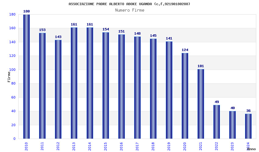 | Anno | Firme | Importi | Media | Naz. | Reg. | Prov. | Comu. |