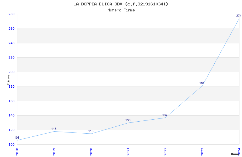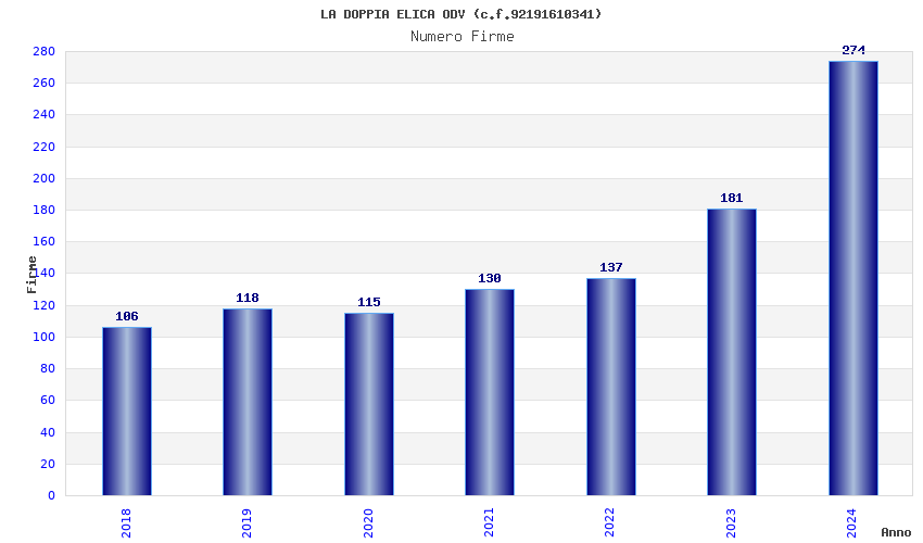 | Anno | Firme | Importi | Media | Naz. | Reg. | Prov. | Comu. |