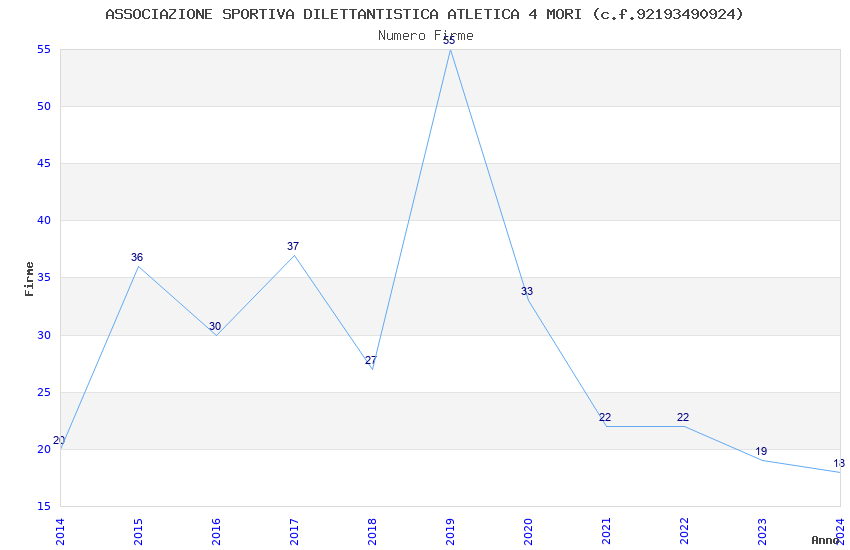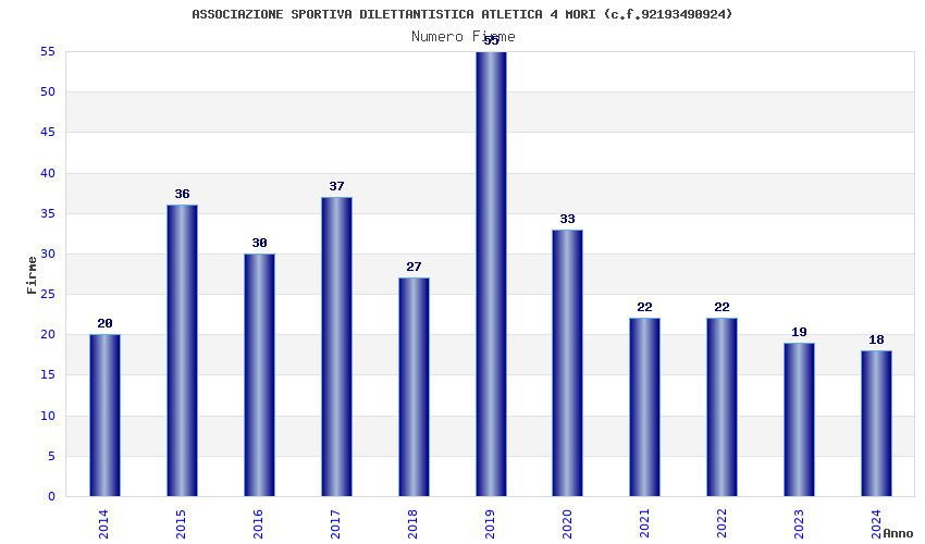 | 2019 | 55 | 1.233,68 | 22,43 | 32.013 | 698 | 122 | 3 |