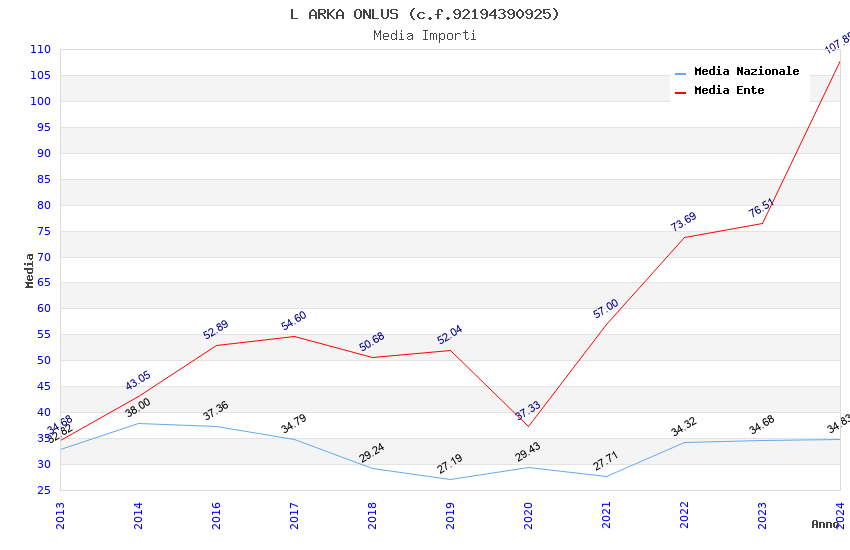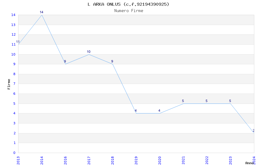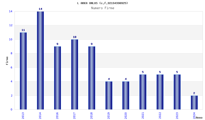 | Anno | Firme | Importi | Media | Naz. | Reg. | Prov. | Comu. |