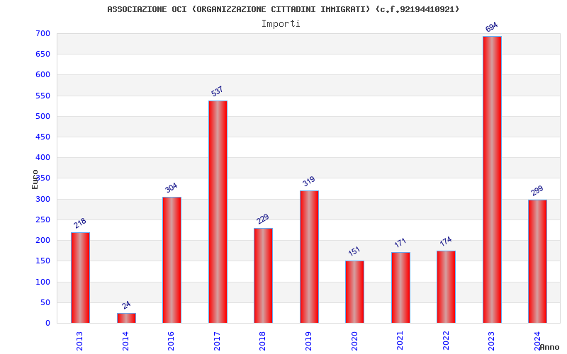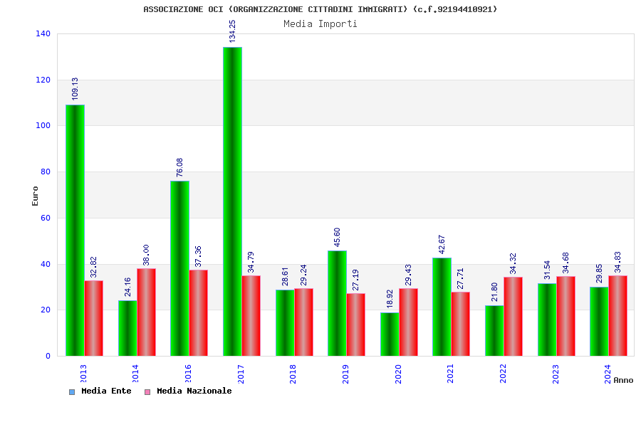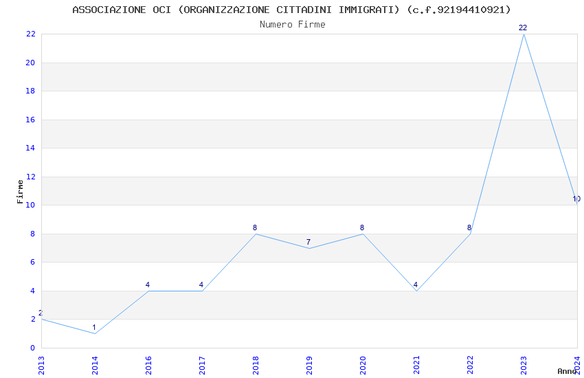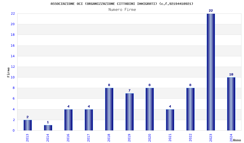 | Anno | Firme | Importi | Media | Naz. | Reg. | Prov. | Comu. |