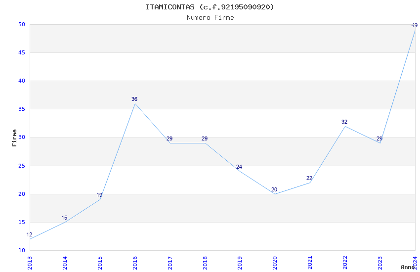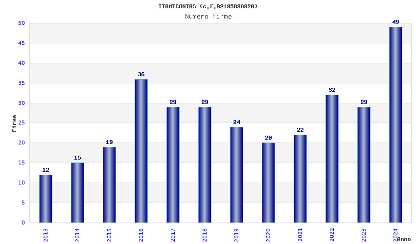 Anno Firme Importi Media Naz. Reg. Prov. Comu.