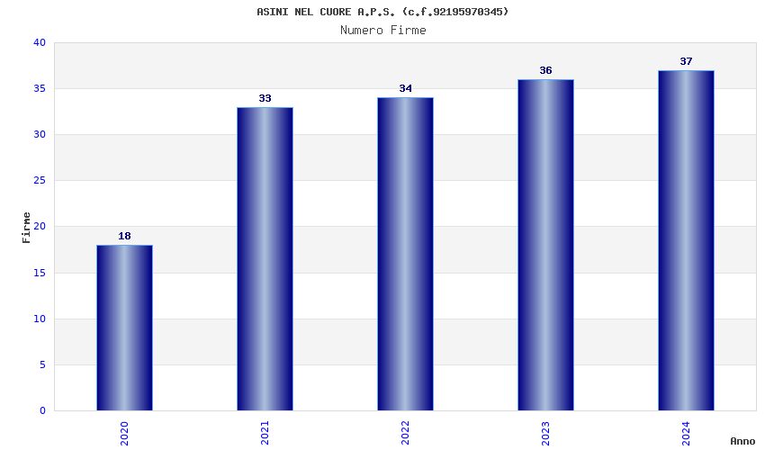 | Anno | Firme | Importi | Media | Naz. | Reg. | Prov. | Comu. |