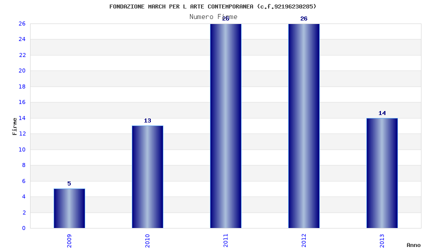 | Anno | Firme | Importi | Media | Naz. | Reg. | Prov. | Comu. |