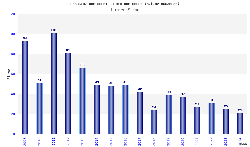 | Anno | Firme | Importi | Media | Naz. | Reg. | Prov. | Comu. |