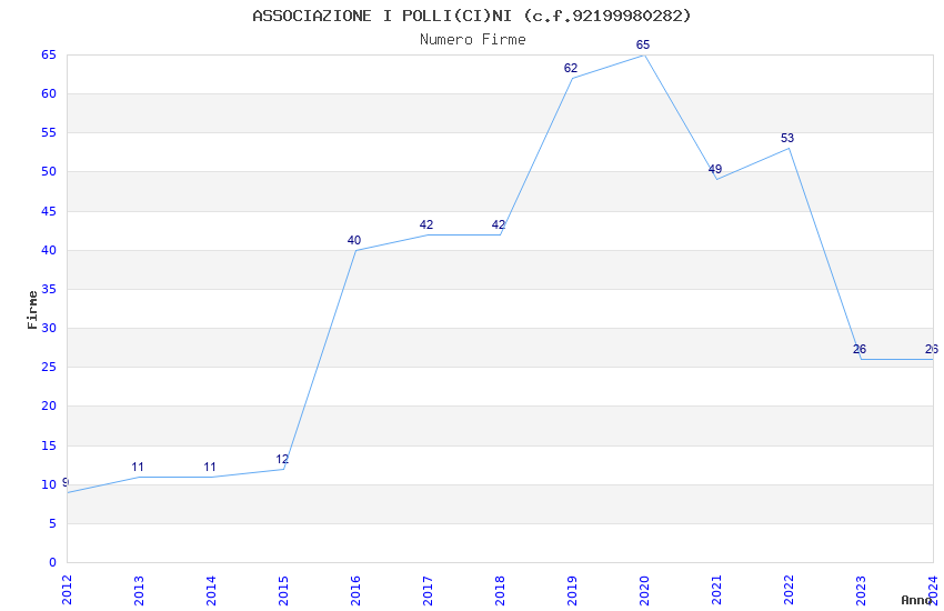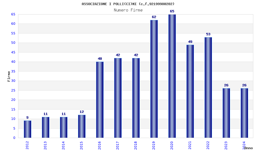 | Anno | Firme | Importi | Media | Naz. | Reg. | Prov. | Comu. |