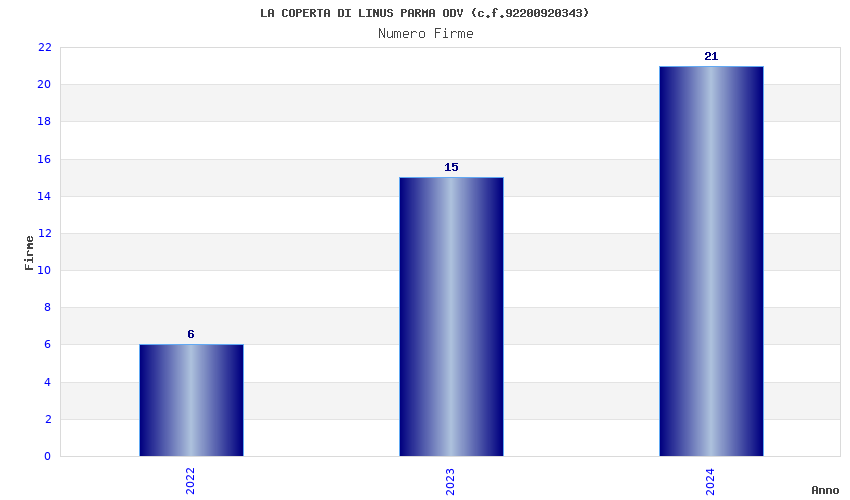 | Anno | Firme | Importi | Media | Naz. | Reg. | Prov. | Comu. |