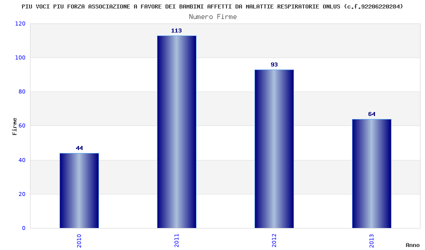 | Anno | Firme | Importi | Media | Naz. | Reg. | Prov. | Comu. |
