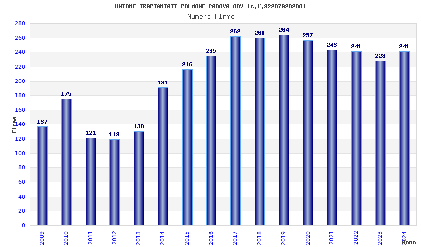 | 2019 | 264 | 8.724,25 | 33,05 | 6.103 | 553 | 139 | 81 |