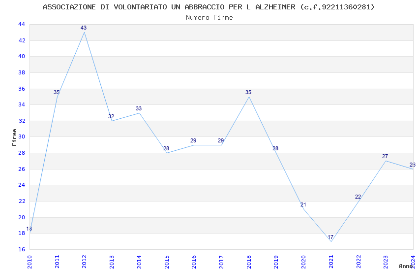 | Anno | Firme | Importi | Media | Naz. | Reg. | Prov. | Comu. |