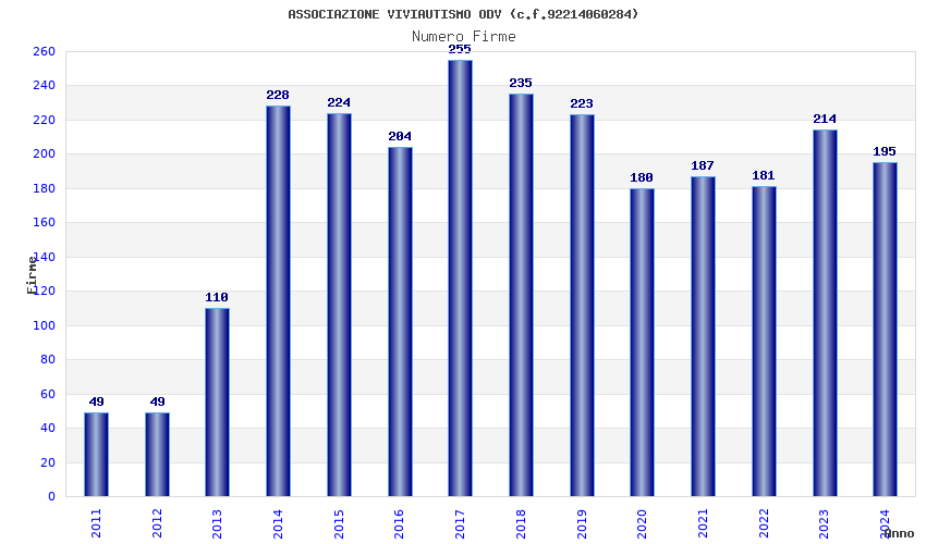 | Anno | Firme | Importi | Media | Naz. | Reg. | Prov. | Comu. |