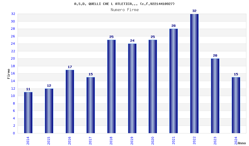 | Anno | Firme | Importi | Media | Naz. | Reg. | Prov. | Comu. |