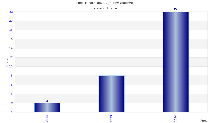 | Anno | Firme | Importi | Media | Naz. | Reg. | Prov. | Comu. |