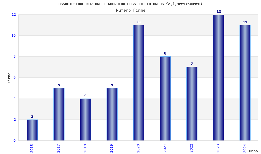 | Anno | Firme | Importi | Media | Naz. | Reg. | Prov. | Comu. |
