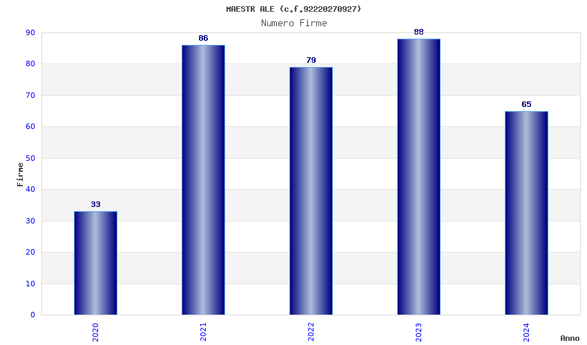 | Anno | Firme | Importi | Media | Naz. | Reg. | Prov. | Comu. |