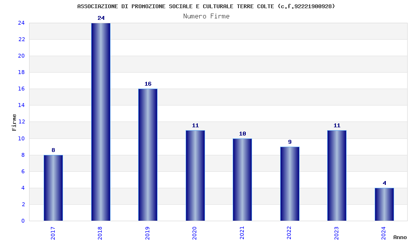 | Anno | Firme | Importi | Media | Naz. | Reg. | Prov. | Comu. |