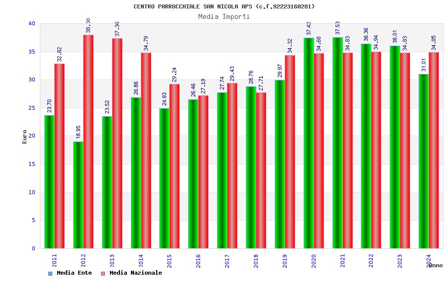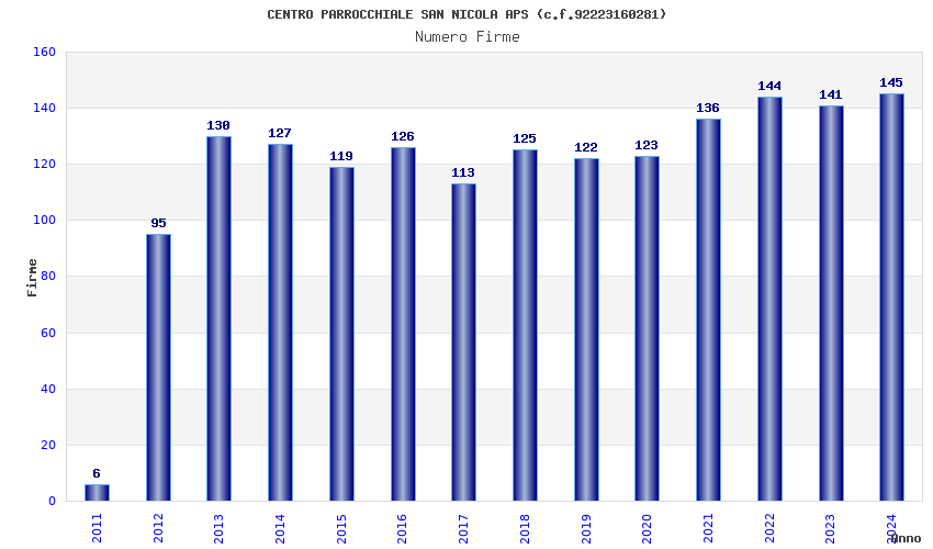 | Anno | Firme | Importi | Media | Naz. | Reg. | Prov. | Comu. |