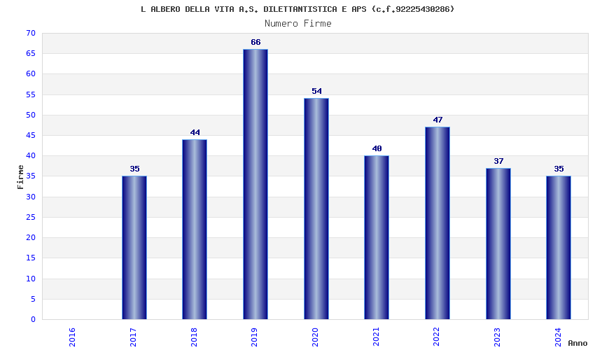 | Anno | Firme | Importi | Media | Naz. | Reg. | Prov. | Comu. |