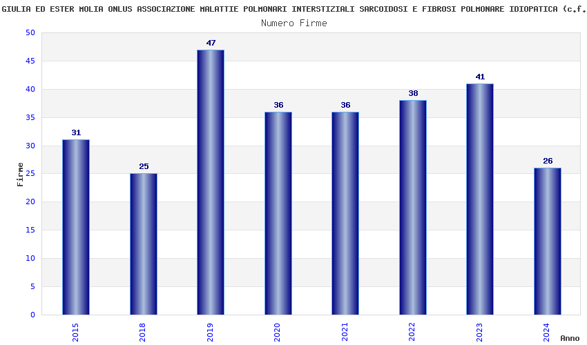 | Anno | Firme | Importi | Media | Naz. | Reg. | Prov. | Comu. |