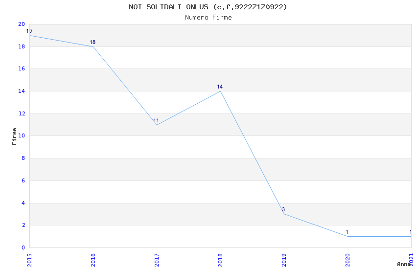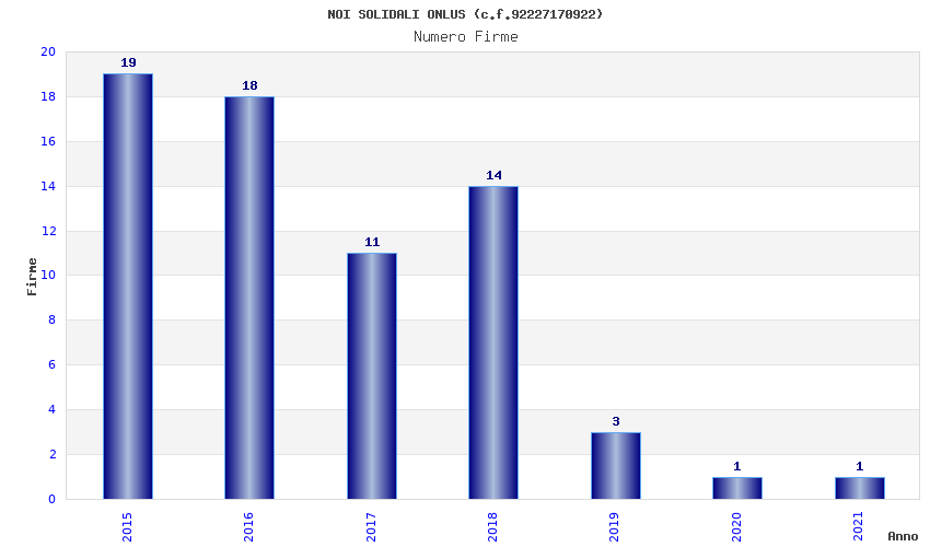 | Anno | Firme | Importi | Media | Naz. | Reg. | Prov. | Comu. |
