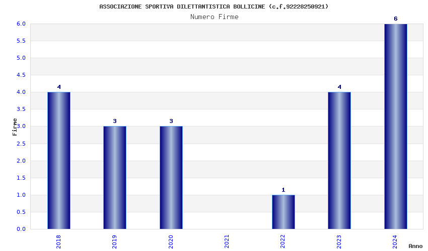 | Anno | Firme | Importi | Media | Naz. | Reg. | Prov. | Comu. |