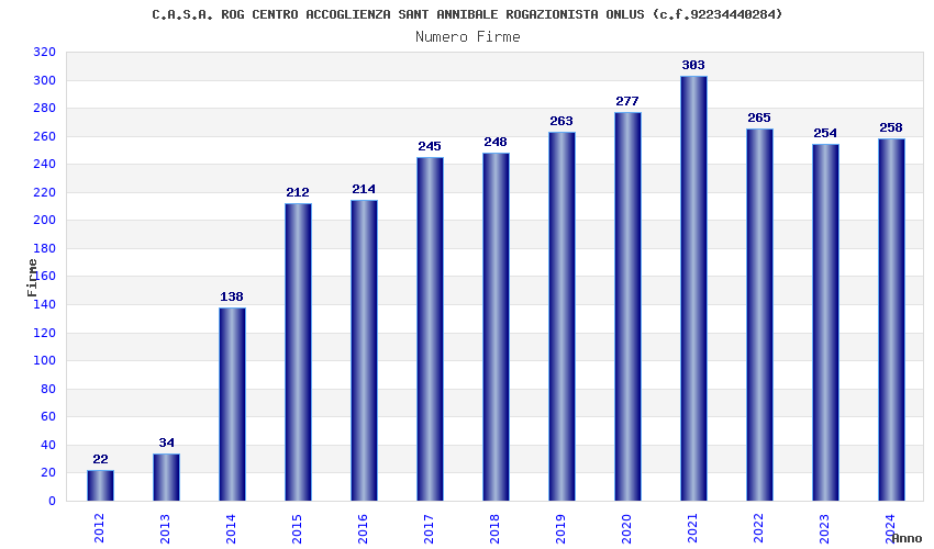 | Anno | Firme | Importi | Media | Naz. | Reg. | Prov. | Comu. |