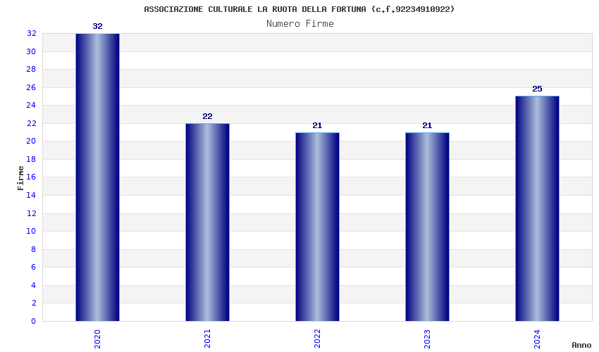 | Anno | Firme | Importi | Media | Naz. | Reg. | Prov. | Comu. |