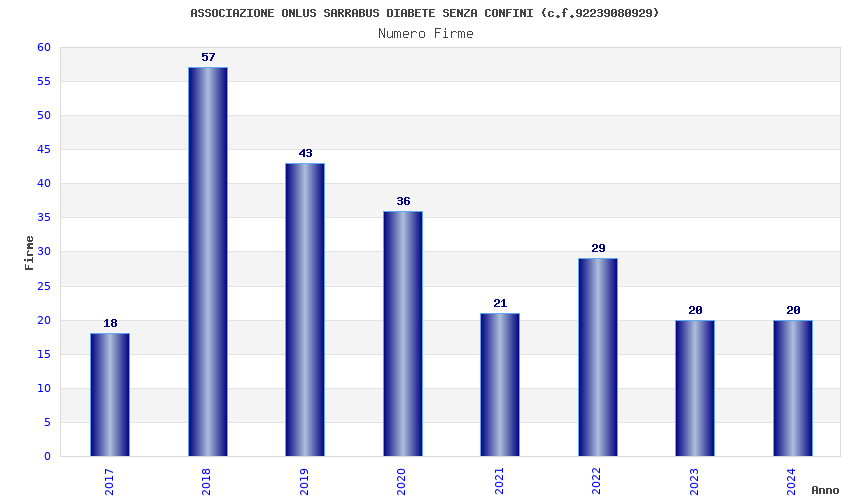 | Anno | Firme | Importi | Media | Naz. | Reg. | Prov. | Comu. |