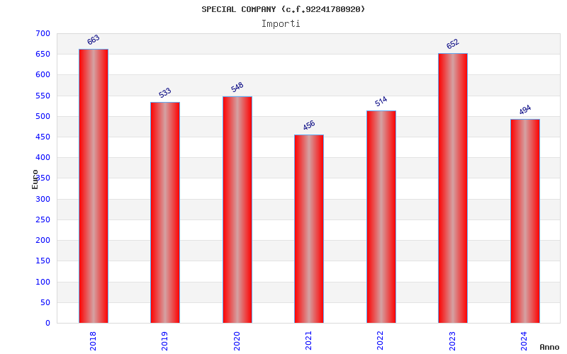 | Anno | Firme | Importi | Media | Naz. | Reg. | Prov. | Comu. |