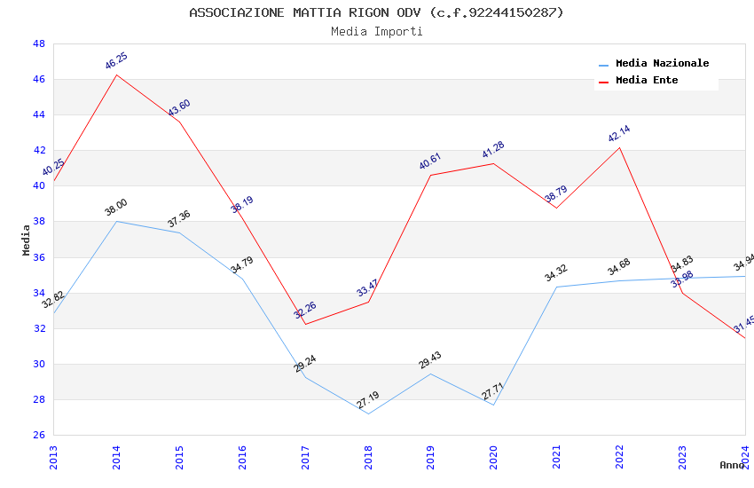 | Anno | Firme | Importi | Media | Naz. | Reg. | Prov. | Comu. |