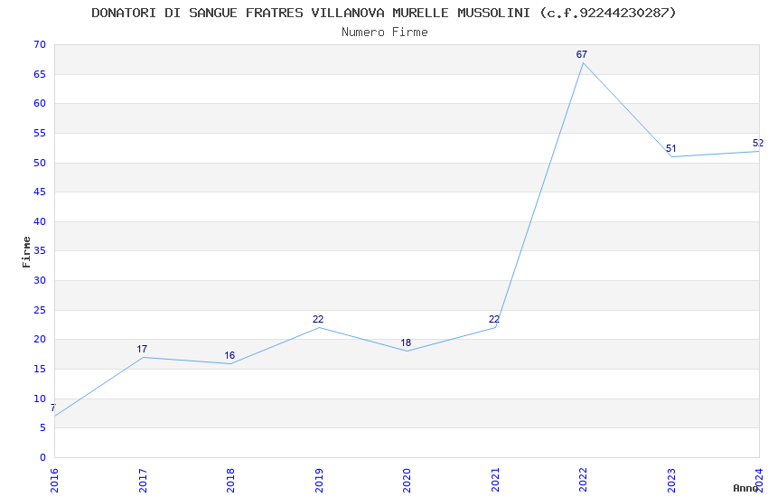 | 2022 | 67 | 1.476,10 | 22,03 | 27.987 | 2.686 | 600 | 4 |