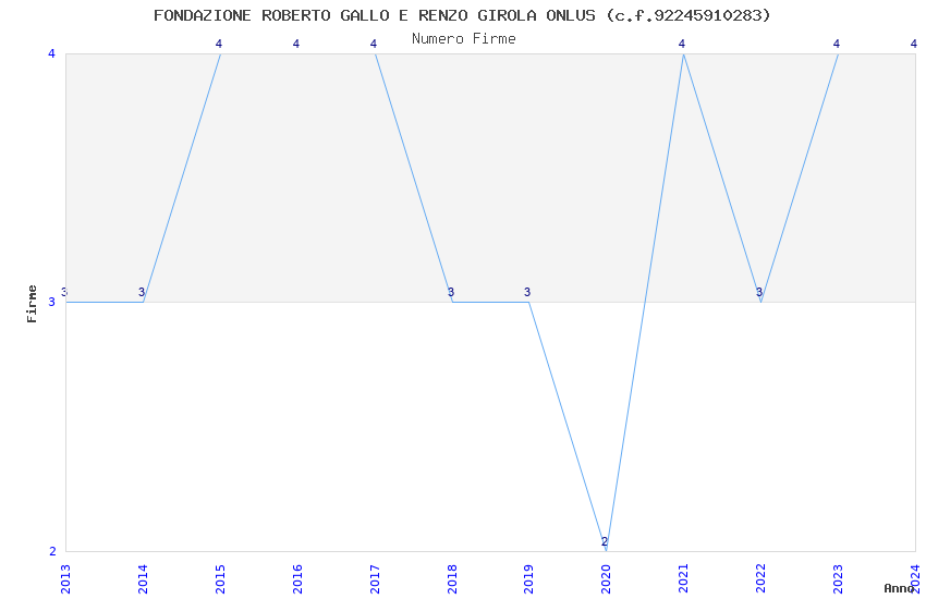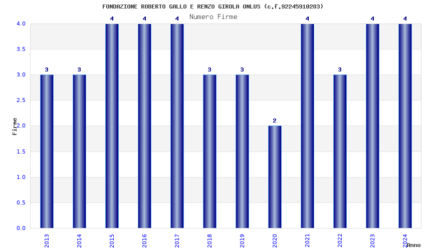 | Anno | Firme | Importi | Media | Naz. | Reg. | Prov. | Comu. |