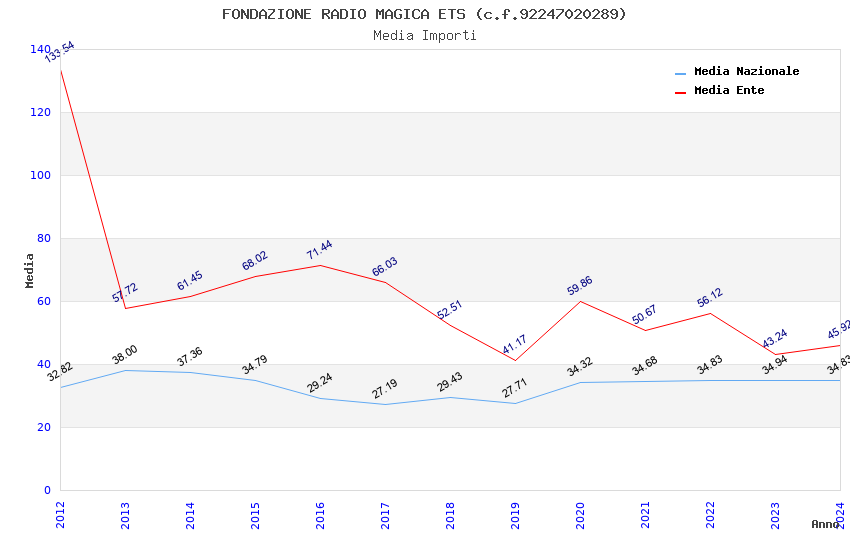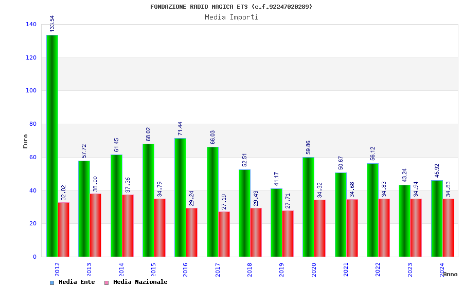 | Anno | Firme | Importi | Media | Naz. | Reg. | Prov. | Comu. |
