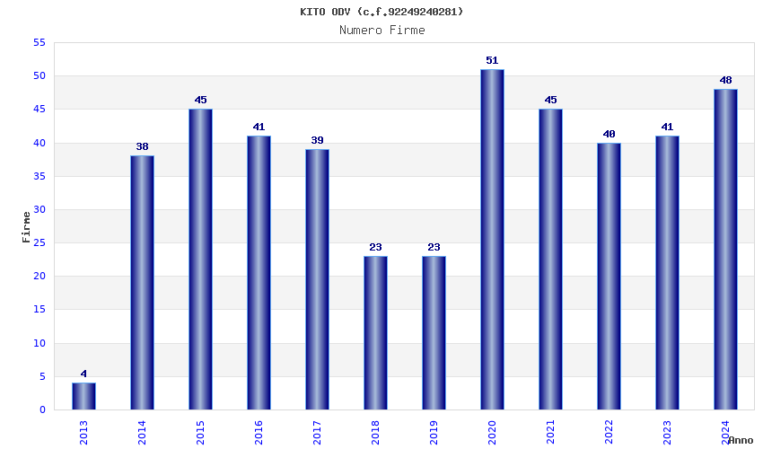 | Anno | Firme | Importi | Media | Naz. | Reg. | Prov. | Comu. |