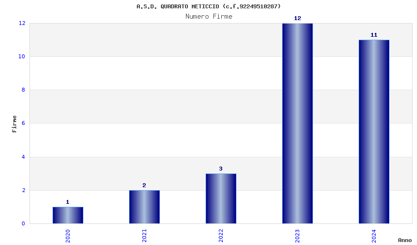 | Anno | Firme | Importi | Media | Naz. | Reg. | Prov. | Comu. |