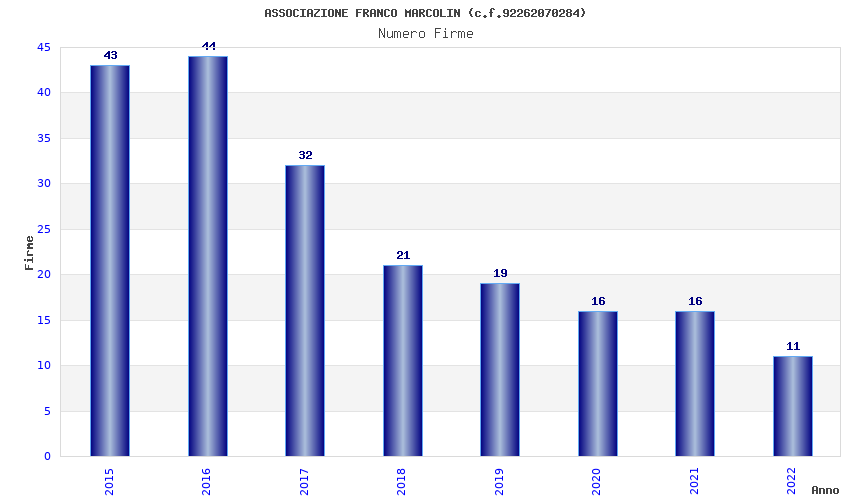 | 2016 | 44 | 3.649,89 | 82,95 | 14.639 | 1.399 | 327 | 5 |