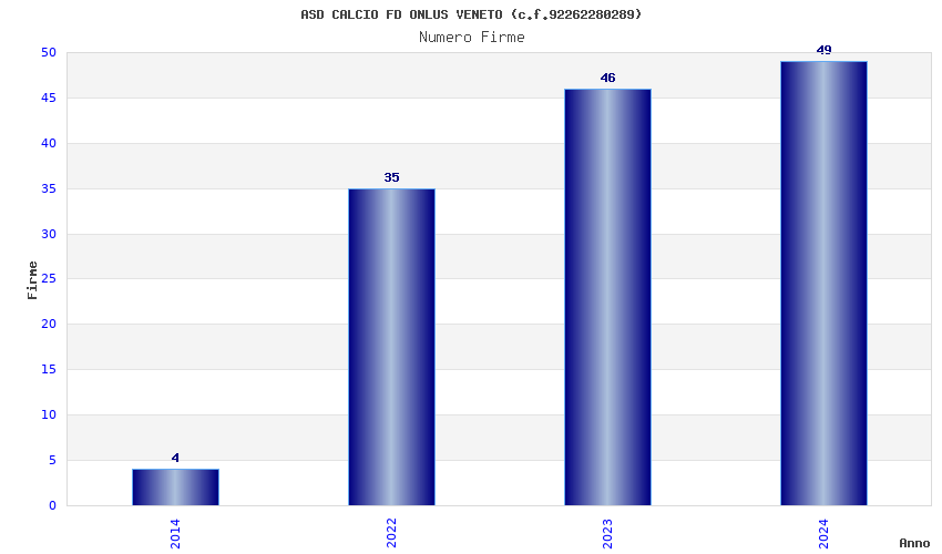 | Anno | Firme | Importi | Media | Naz. | Reg. | Prov. | Comu. |