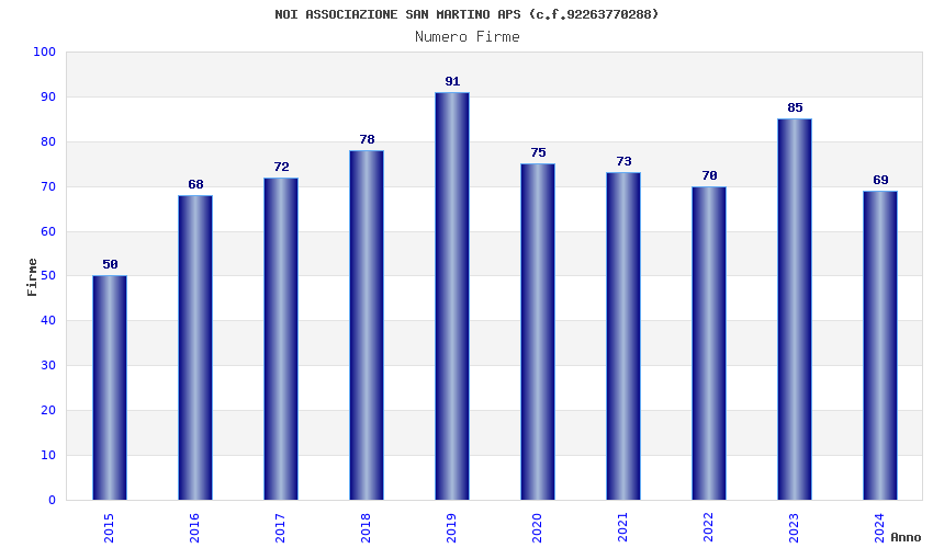 | Anno | Firme | Importi | Media | Naz. | Reg. | Prov. | Comu. |