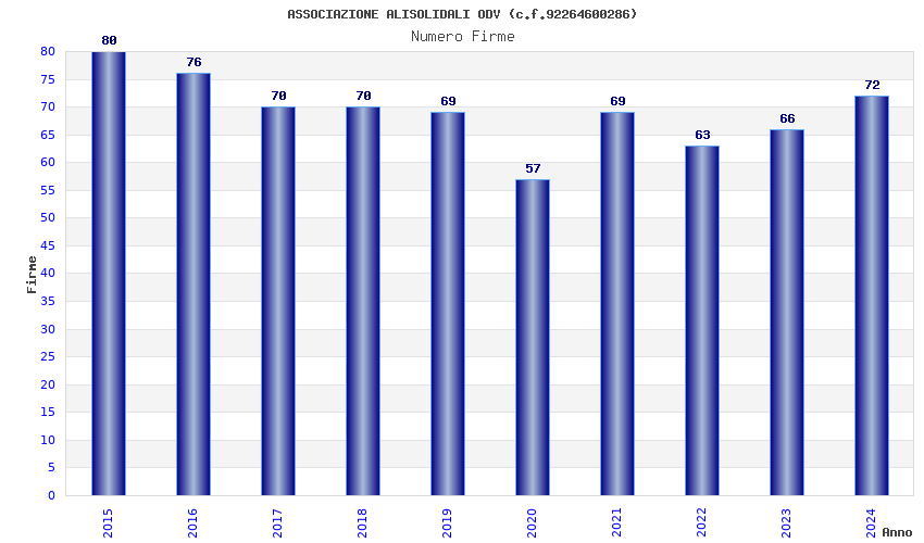 | 2015 | 80 | 2.694,92 | 33,69 | 17.885 | 1.703 | 399 | 182 |