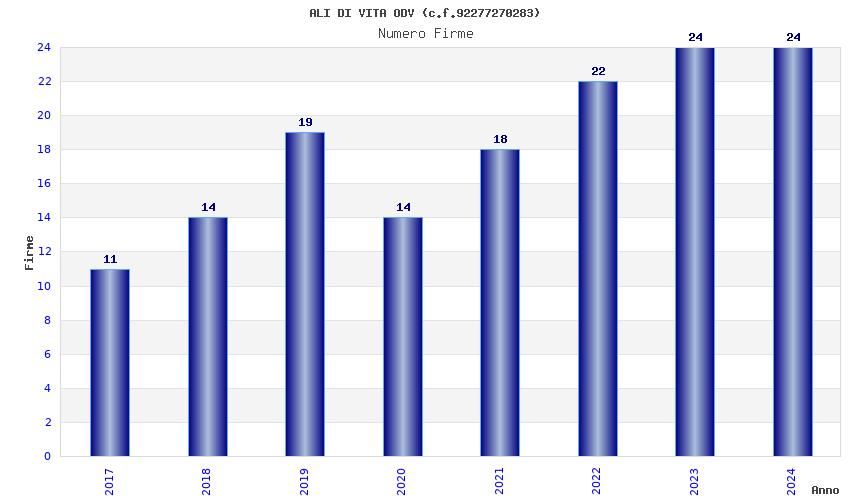 | Anno | Firme | Importi | Media | Naz. | Reg. | Prov. | Comu. |