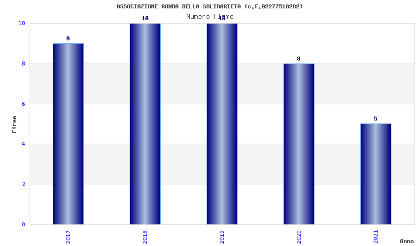 | Anno | Firme | Importi | Media | Naz. | Reg. | Prov. | Comu. |