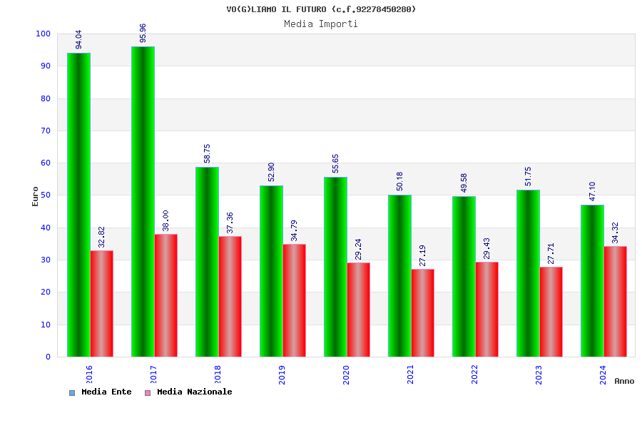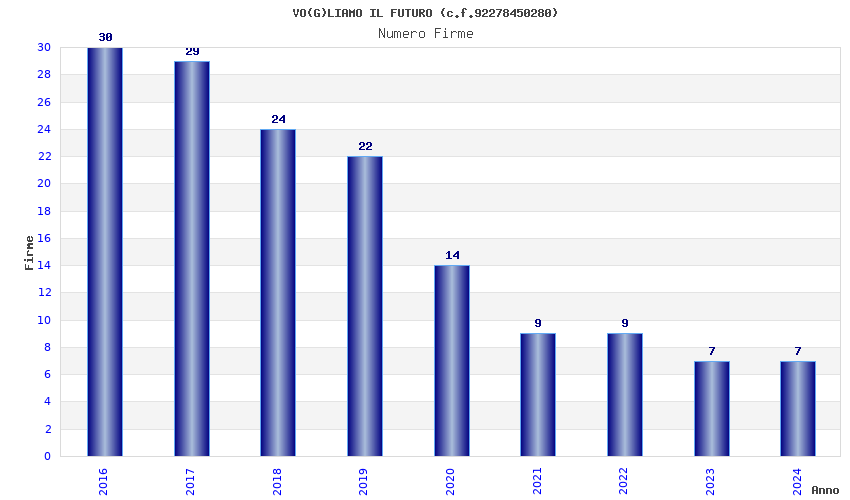 | Anno | Firme | Importi | Media | Naz. | Reg. | Prov. | Comu. |
