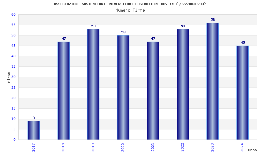 | Anno | Firme | Importi | Media | Naz. | Reg. | Prov. | Comu. |