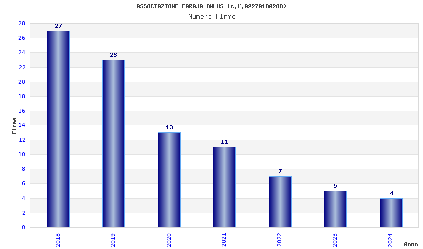 | Anno | Firme | Importi | Media | Naz. | Reg. | Prov. | Comu. |