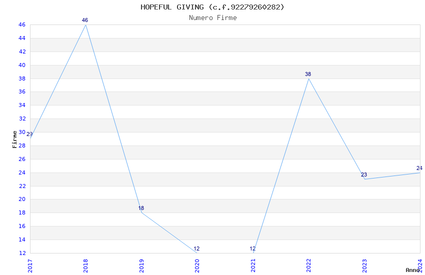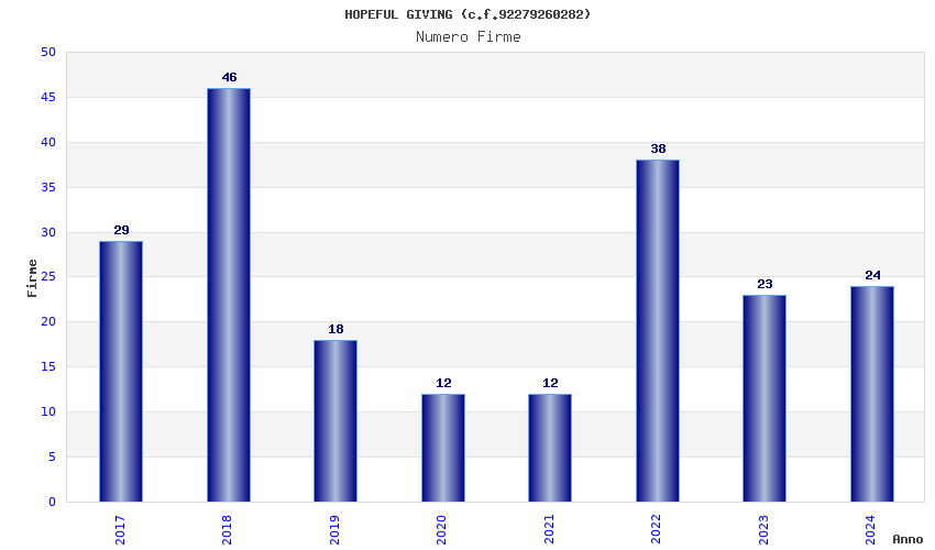 | Anno | Firme | Importi | Media | Naz. | Reg. | Prov. | Comu. |