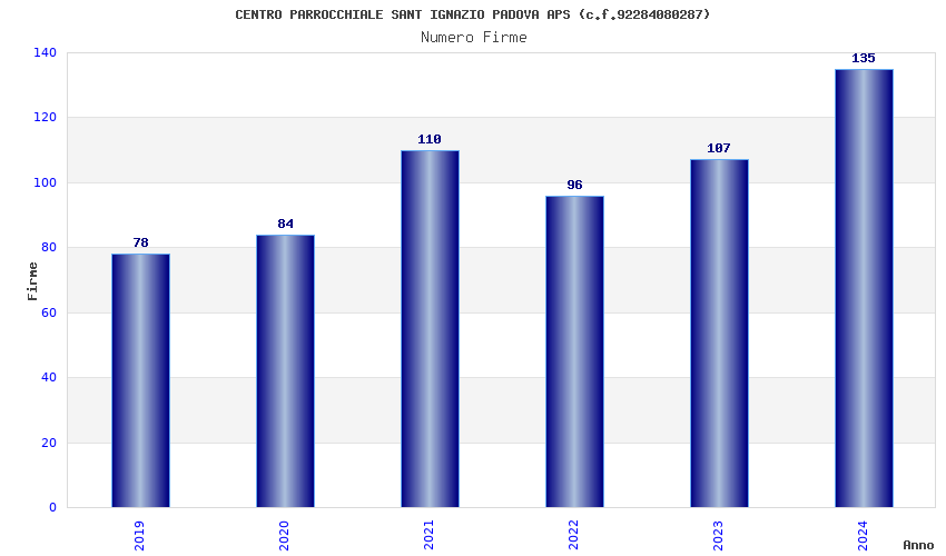 | Anno | Firme | Importi | Media | Naz. | Reg. | Prov. | Comu. |