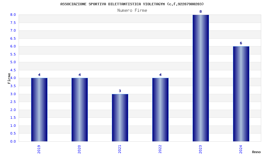 | Anno | Firme | Importi | Media | Naz. | Reg. | Prov. | Comu. |