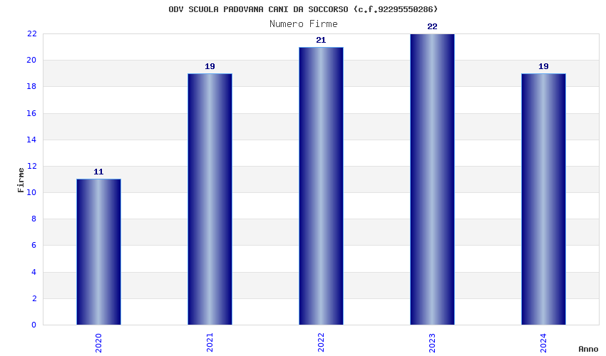 | Anno | Firme | Importi | Media | Naz. | Reg. | Prov. | Comu. |