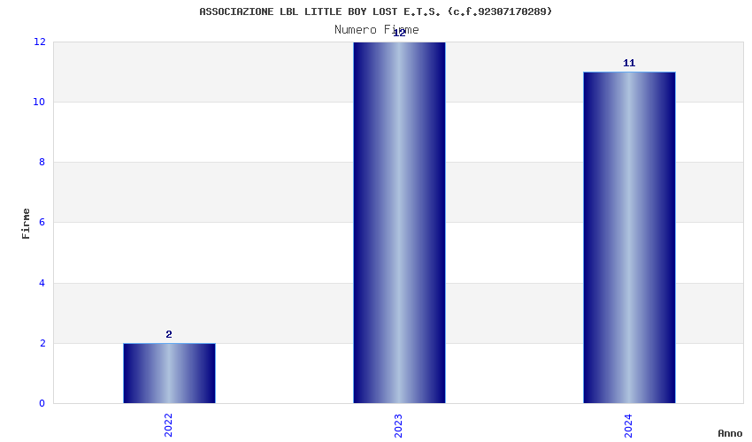 | Anno | Firme | Importi | Media | Naz. | Reg. | Prov. | Comu. |