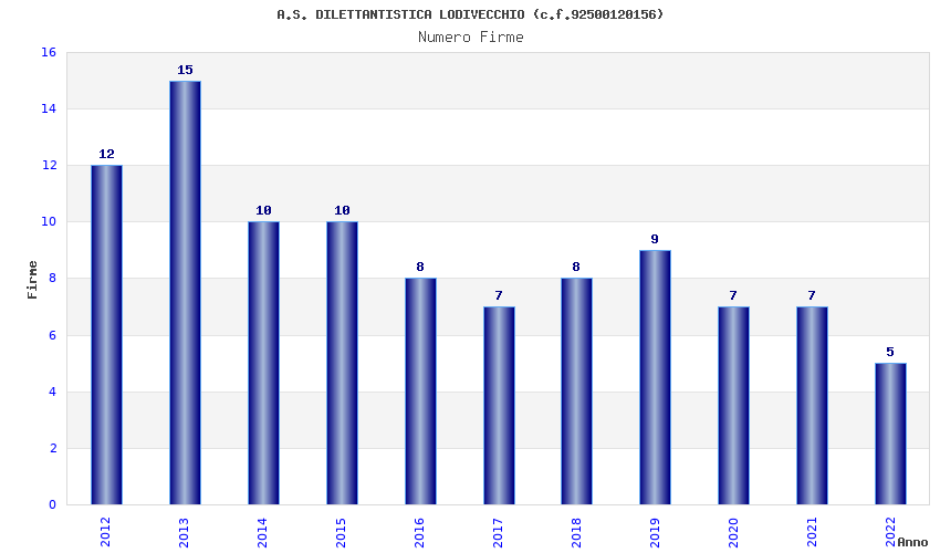 | Anno | Firme | Importi | Media | Naz. | Reg. | Prov. | Comu. |